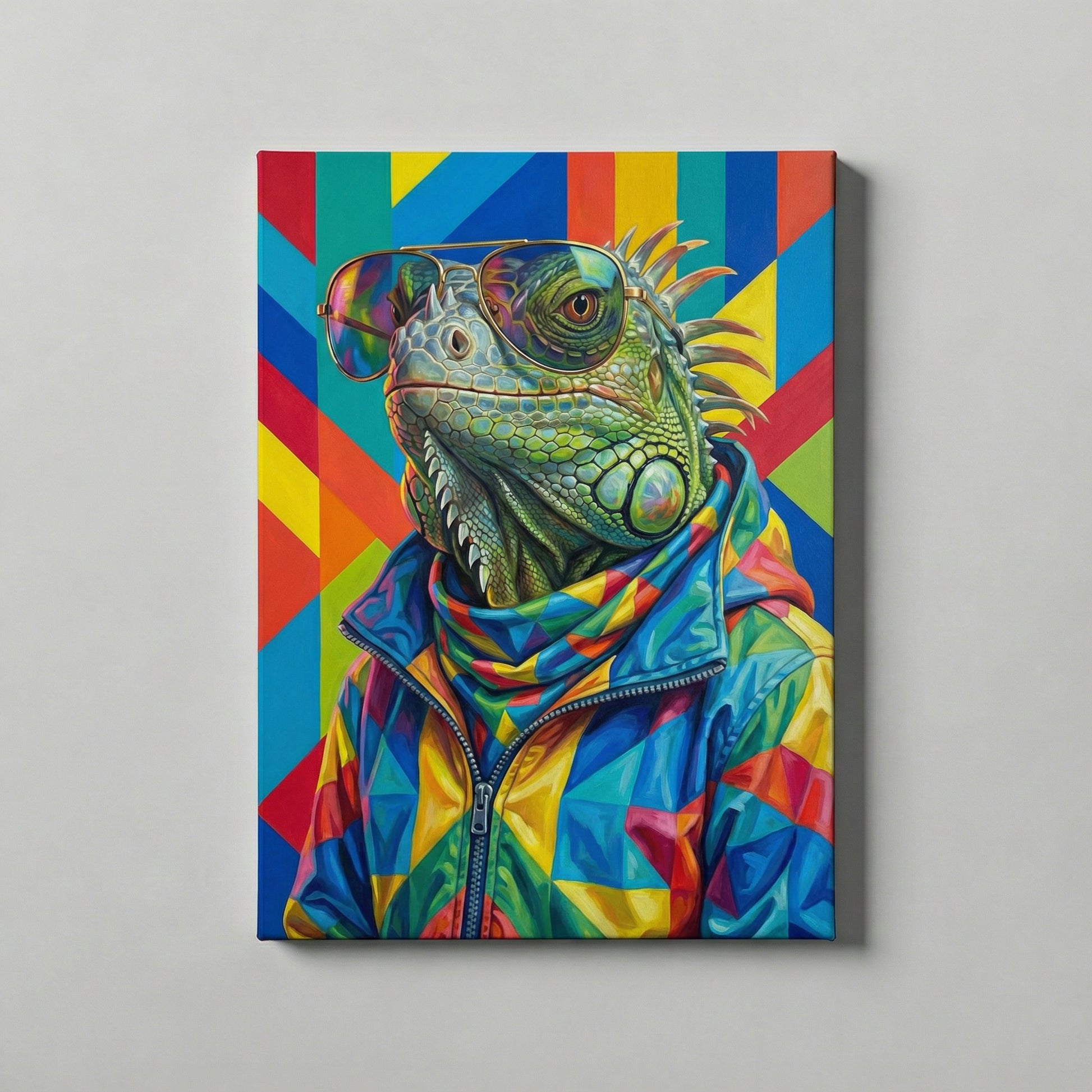 Turn up the volume on your walls. Prism is a loud, proud tribute to bold geometric design and retro nostalgia. Your pet becomes the coolest trendsetter in town, sporting vintage aviator shades and a patterned windbreaker.